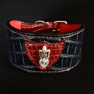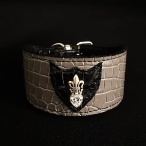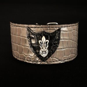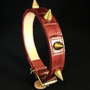 Collier pour petit chien en croco et petits clous laiton 2 cm large .