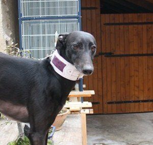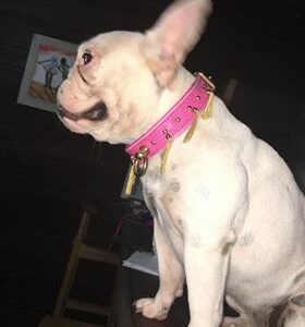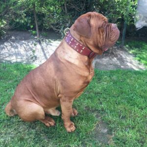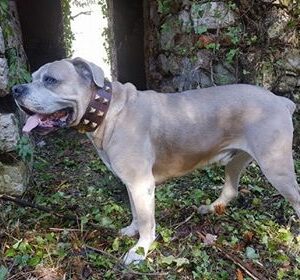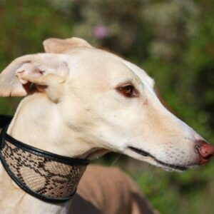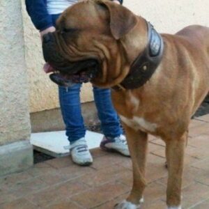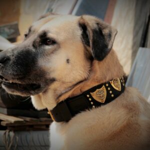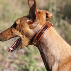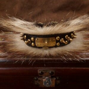 Rare Ancien collier pour chien en cuir orné de poils de blaireau