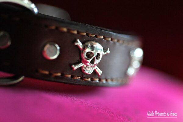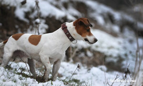| Baltique, un beau Jack russel porte un collier tête de mort réf: 0109 |