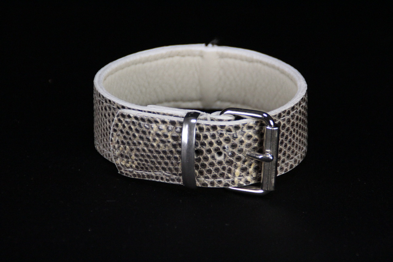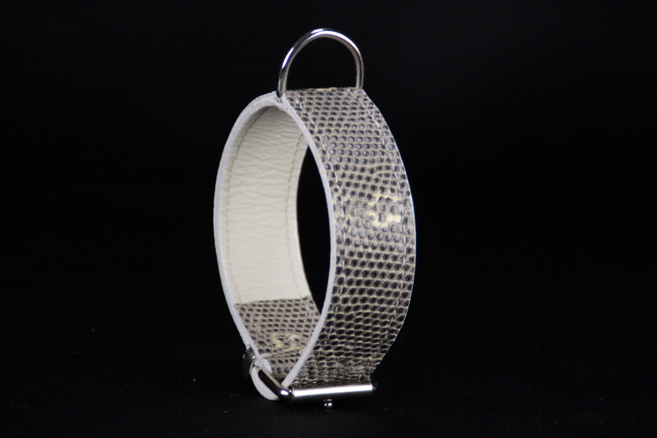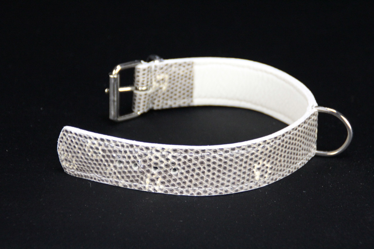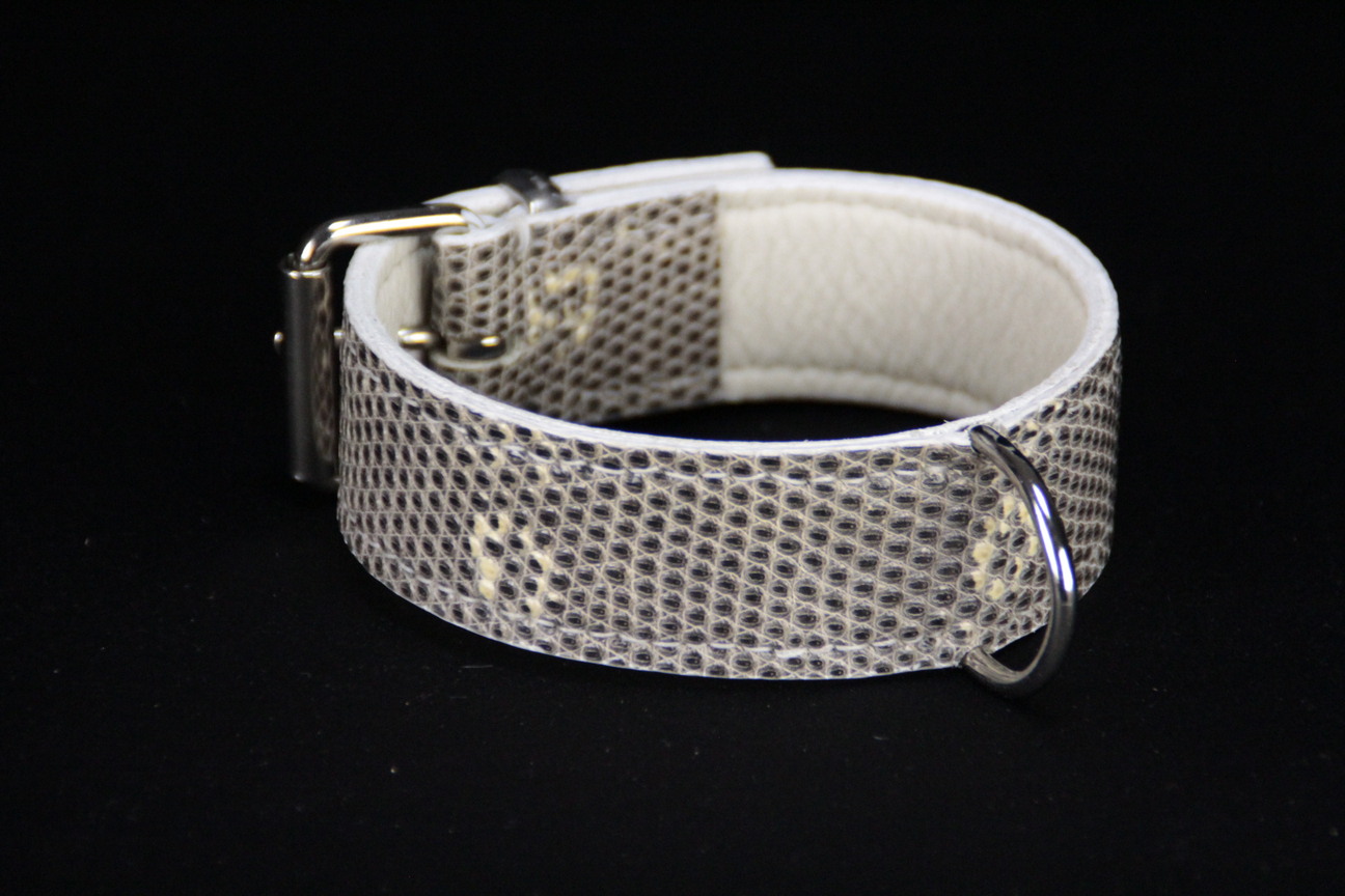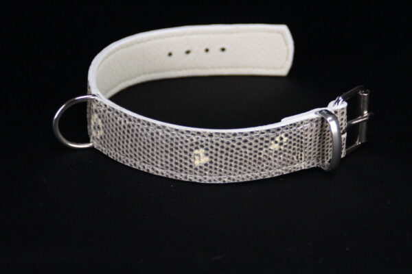 Collier pour chien en lézard gris/blanc – 3,5 cm de large – Cuir cousu main