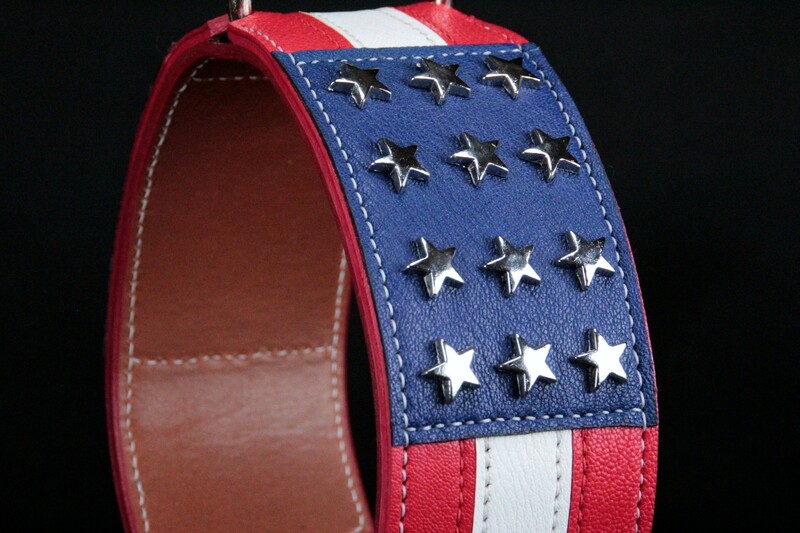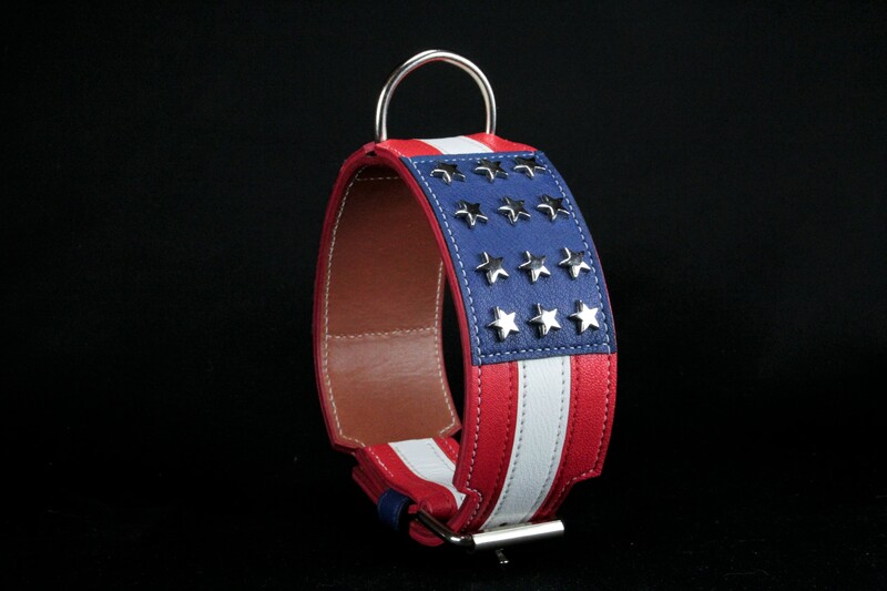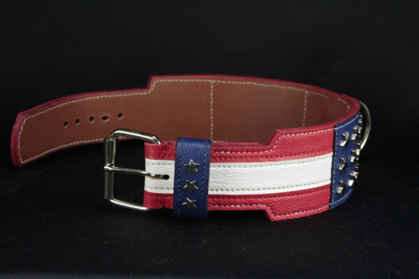 Collier pour Chien « Américain » – 7 cm de Large, Cuir Tricolore & Finitions Métal .