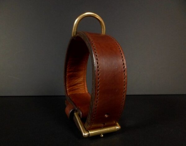 | Nous l’avons monté sur cuir de vache, afin que le chien soit plus protégé, et que ce soit plus confortable pour lui. |