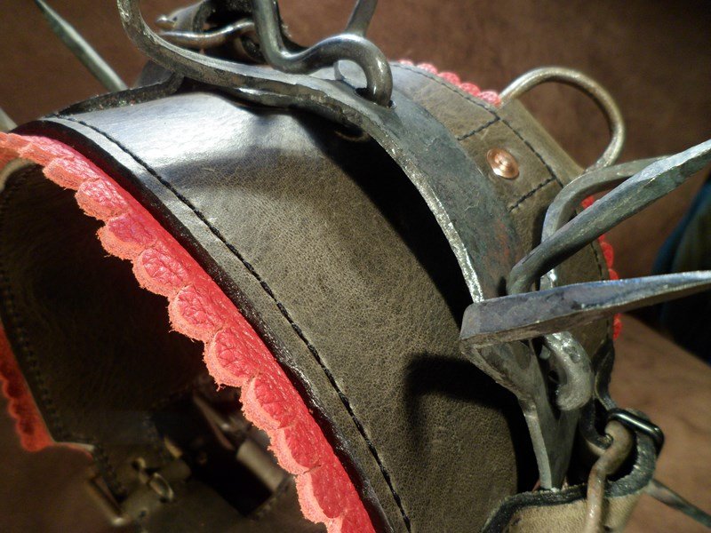 | Nous l’avons monté sur cuir de vache, afin que le chien soit plus protégé, et que ce soit plus confortable pour lui. |