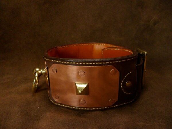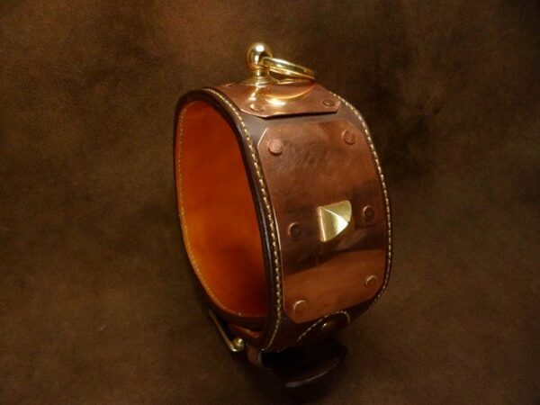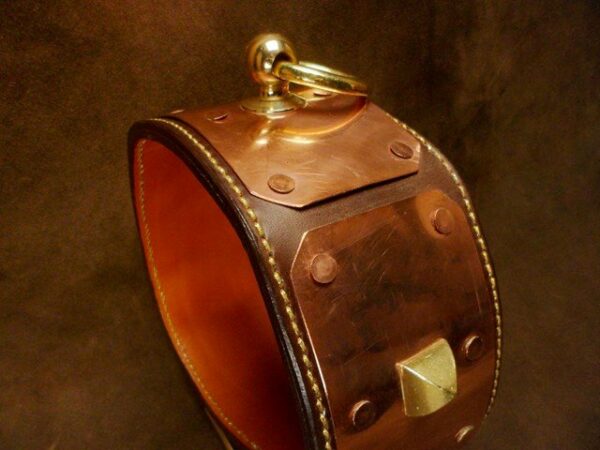 Collier pour Chien « Antique » – 8 cm de Large, Cuir Collet & Laiton Massif .