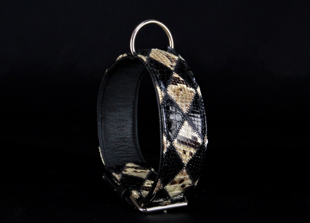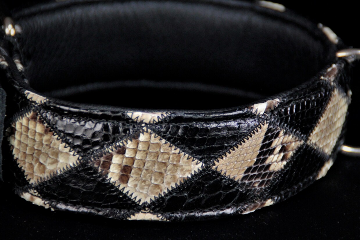 Collier bi colore, bi matière en python verni /cobra noir verni