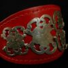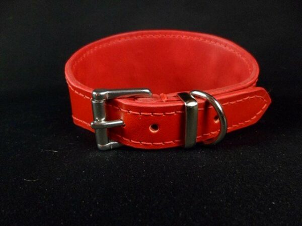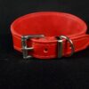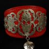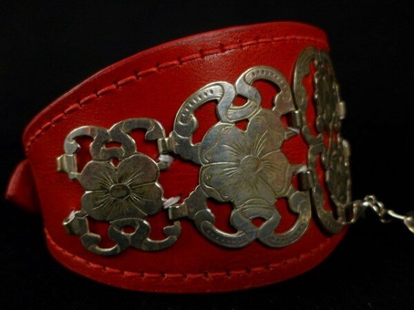 Collier en cuir vachette rouge décors plaqué argent et pompon argenté