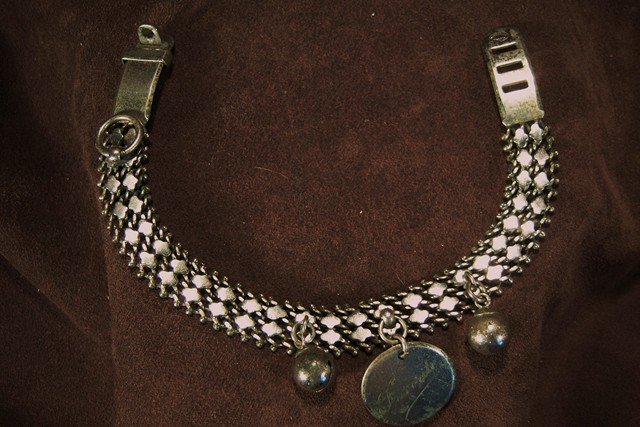 | Il est en métal blanc. |