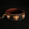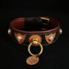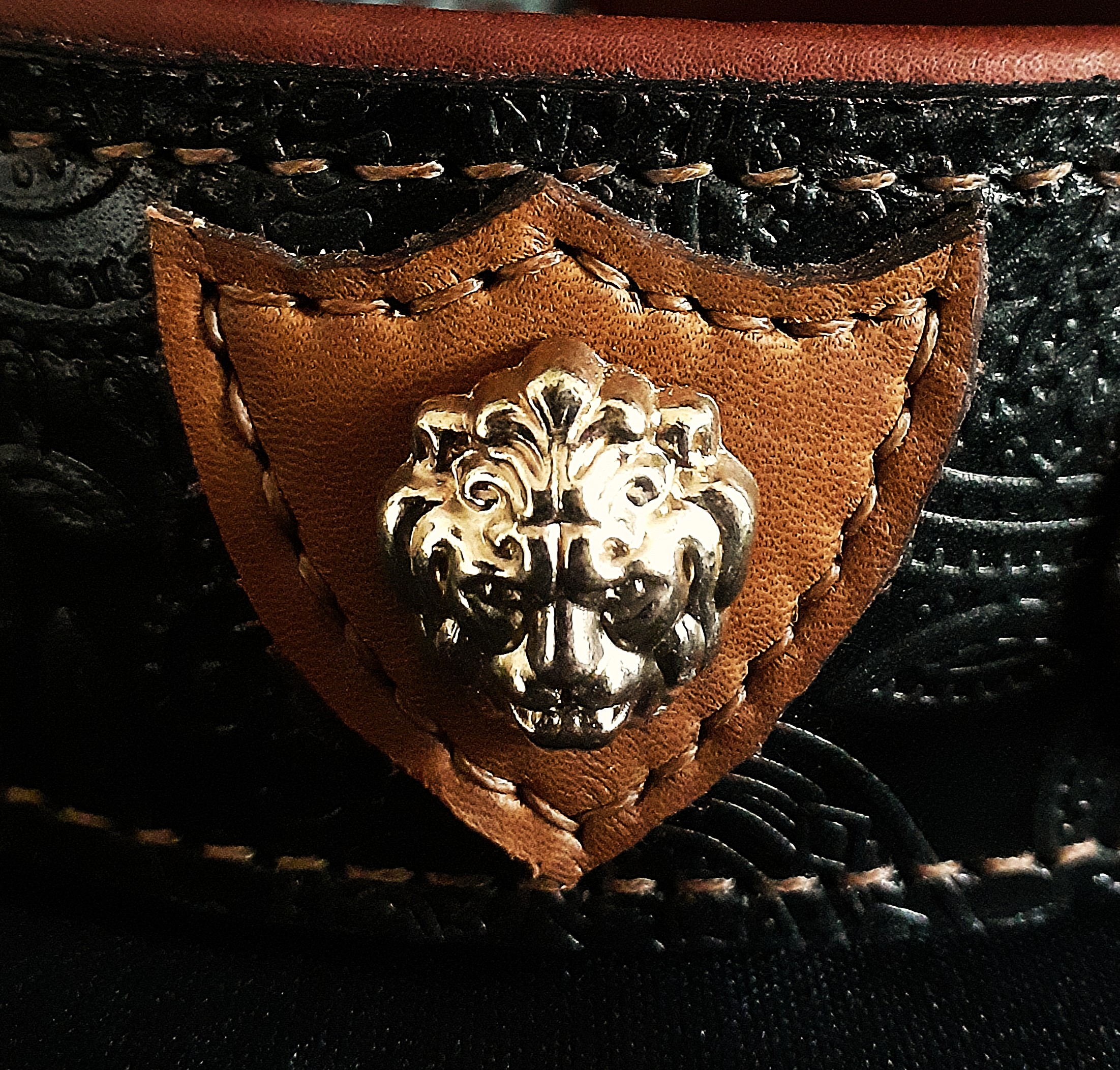 La boucle et l’attache sont en laiton massif, assurant robustesse et longévité, tandis que les détails ornementaux en forme de têtes de lions donnent à ce collier une touche noble et majestueuse. La couture sellier (cousue main) témoigne d’un véritable savoir-faire artisanal.
