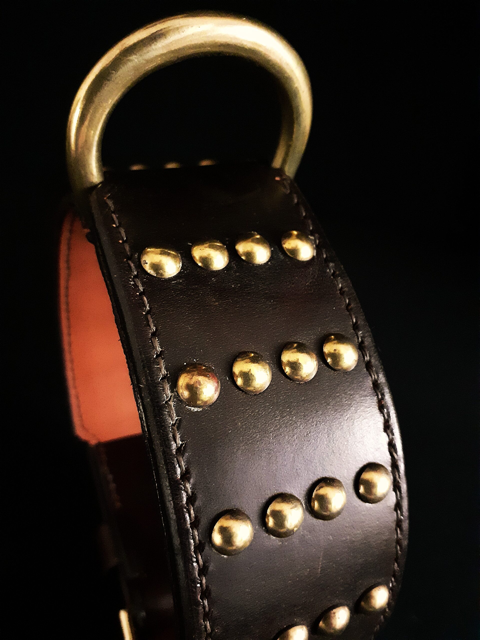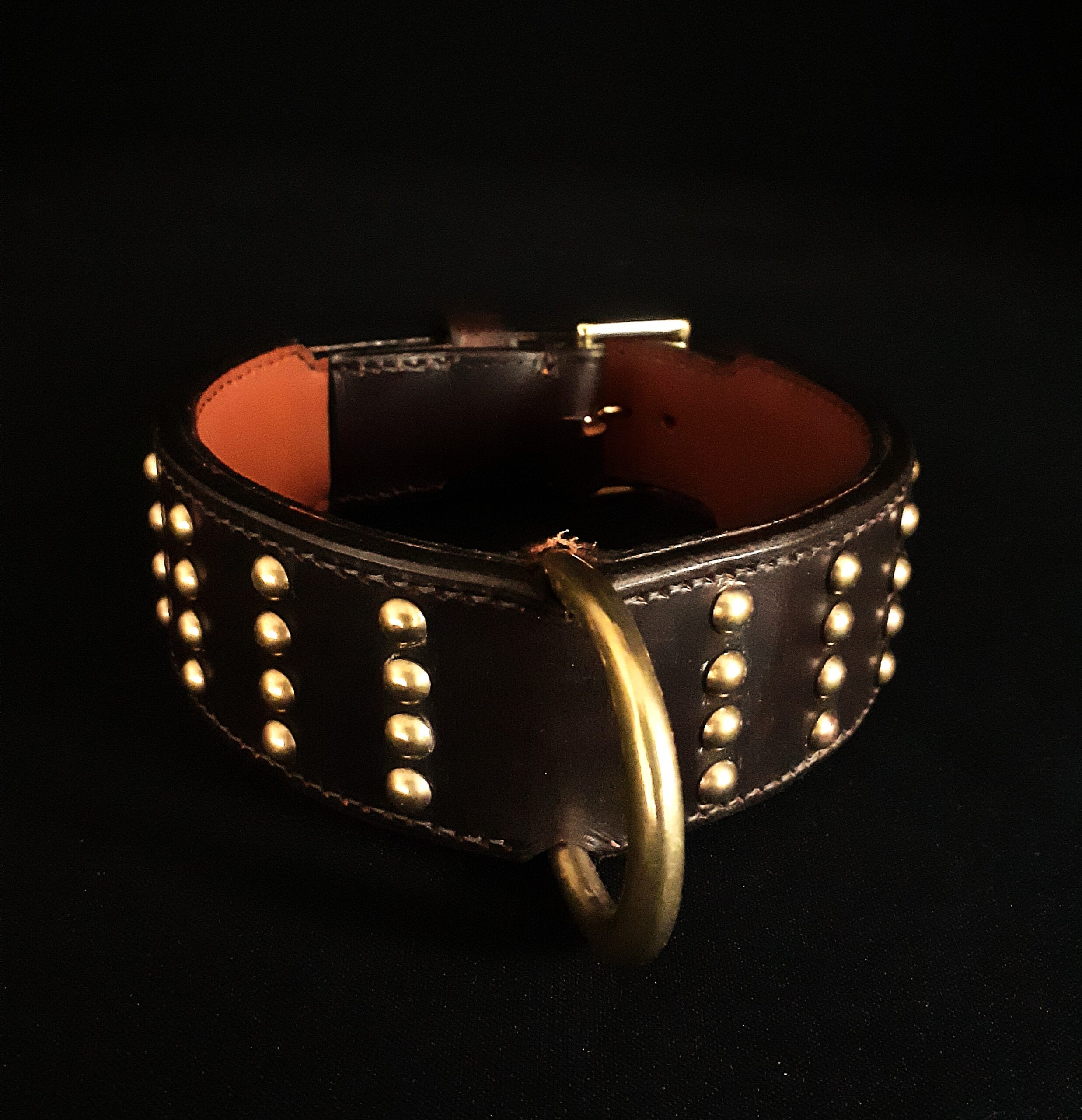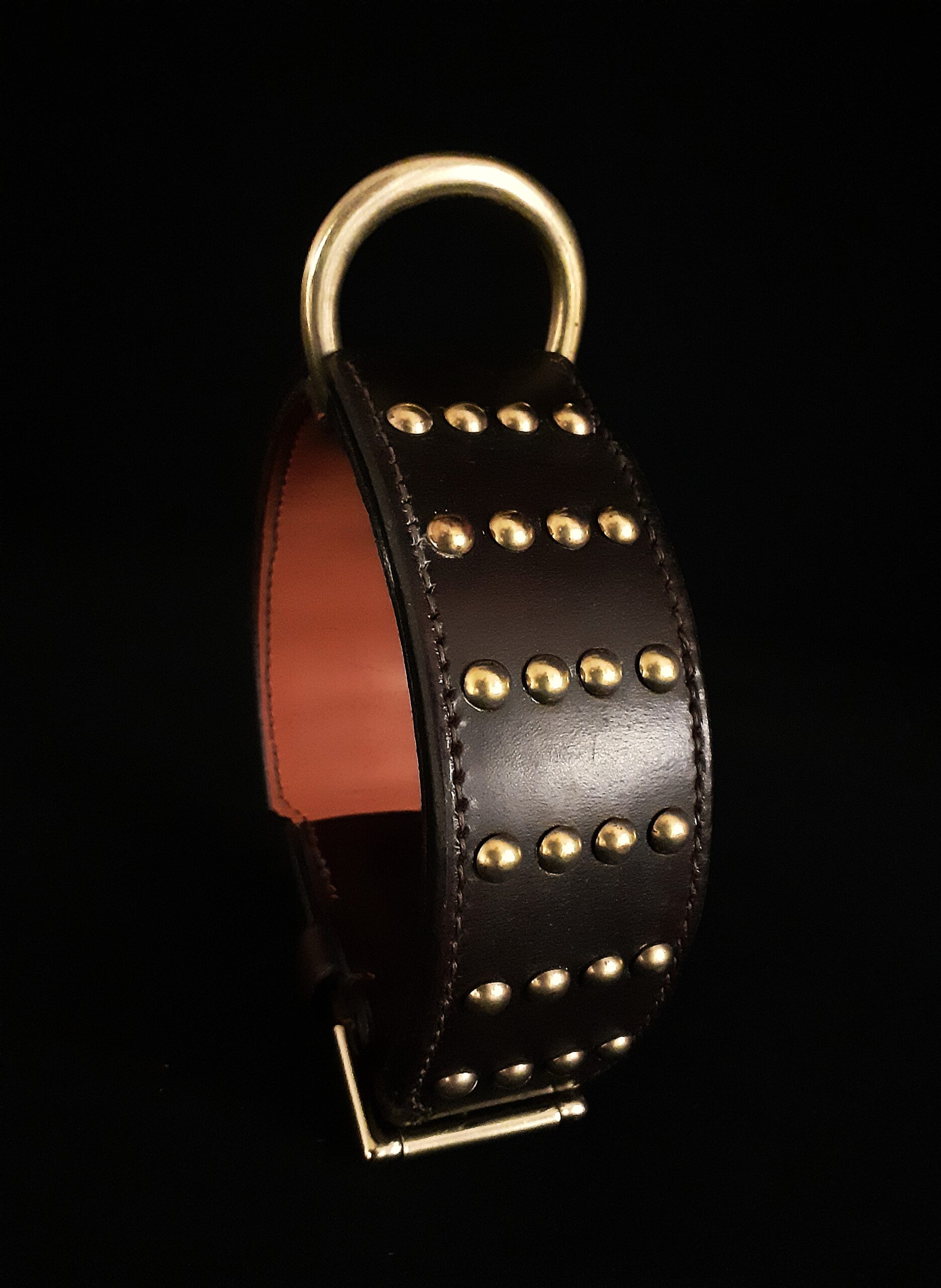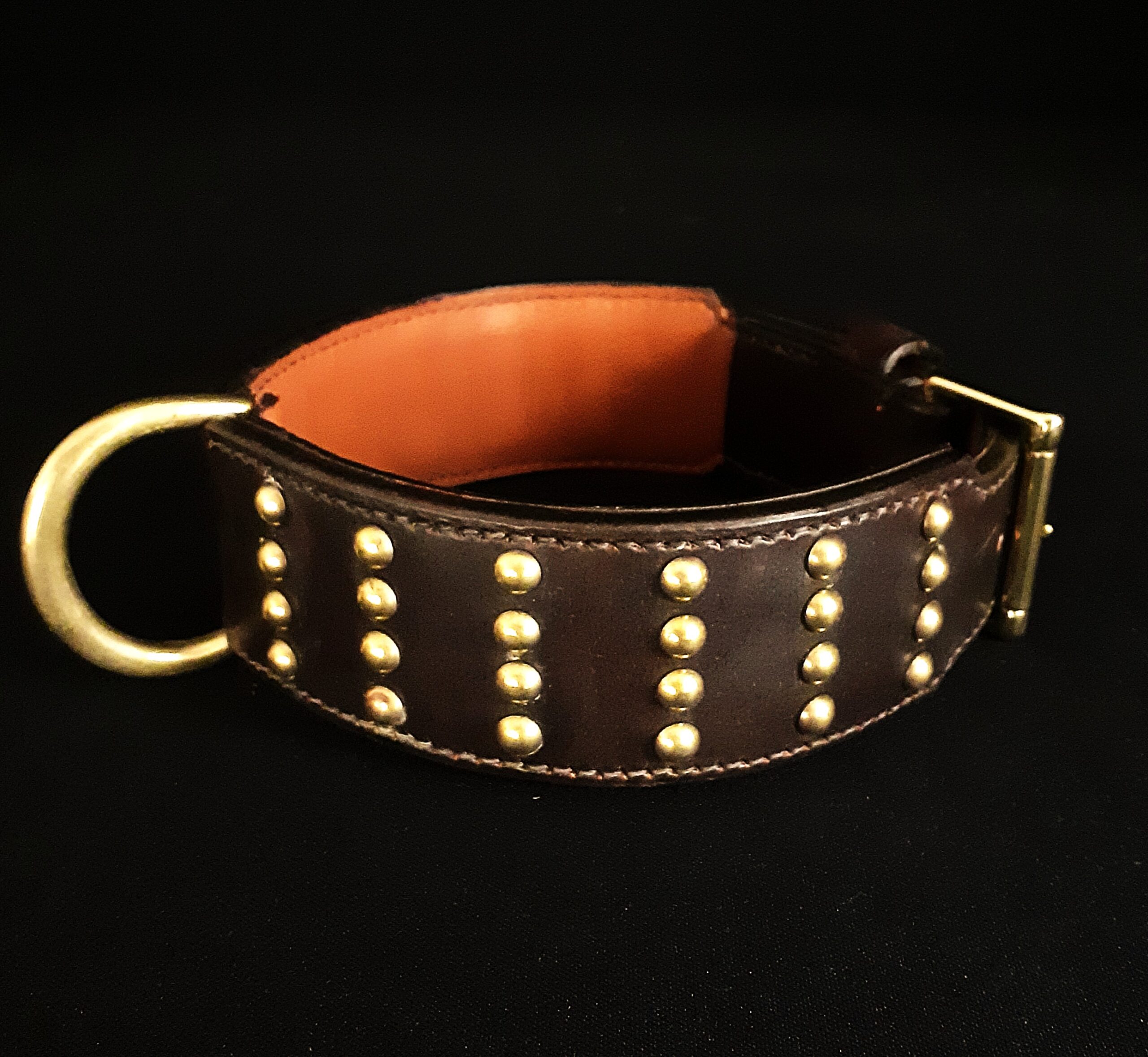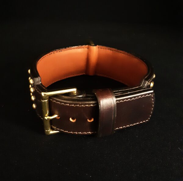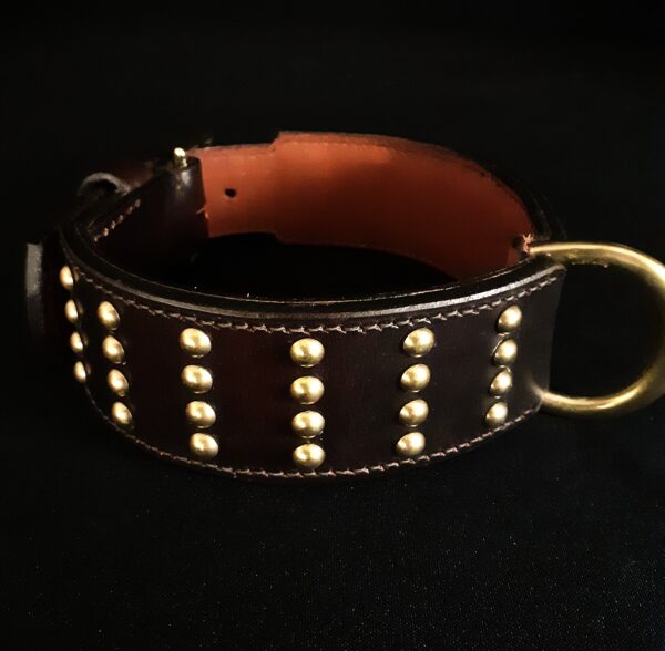 Collier pour chien cuir clous laiton massif .