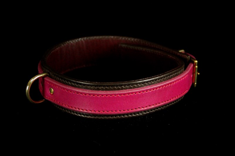 Collier pour chien en cuir de buffle bicolore – 4,5 cm de large .