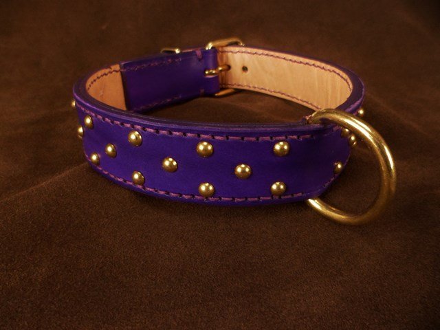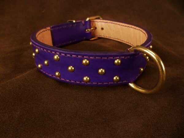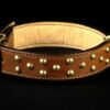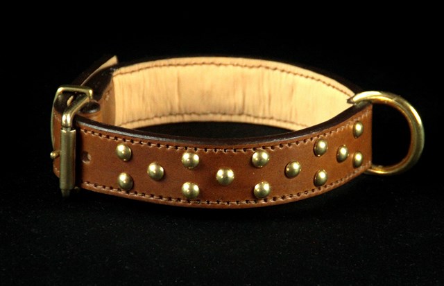 Collier pour chien cuir et petit clous ronds laiton 3 cm large .