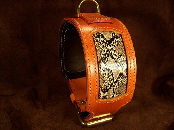 Collier pour chien cuir extra large incrustation Python 7,5 cm de large .