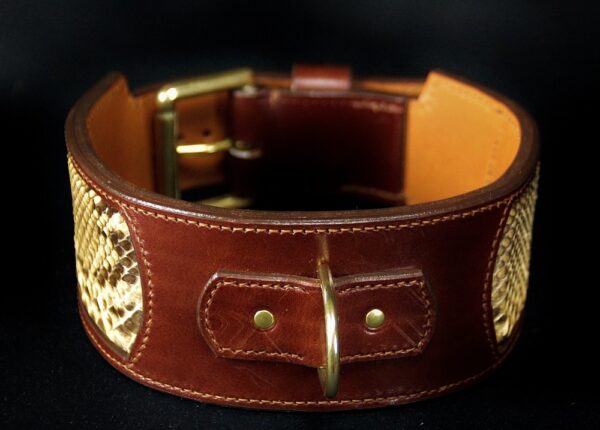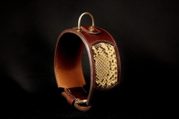 Collier pour chien extra large – Cuir avec incrustation de python – 7,5 cm .