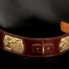 La finition en couture sellier (cousue main) témoigne d’un savoir-faire artisanal rare, pour un collier aussi résistant qu’élégant.
