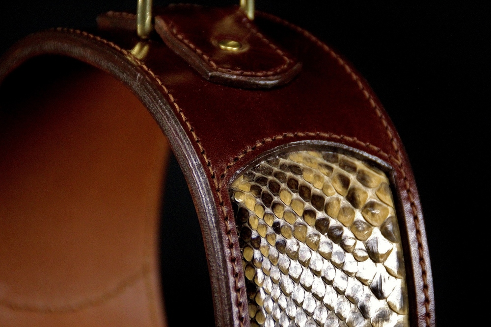 Collier pour chien extra large – Cuir avec incrustation de python – 7,5 cm .