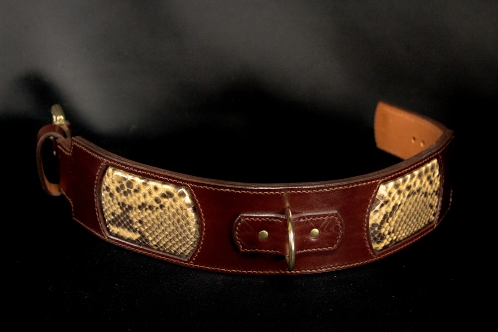 Collier pour chien cuir extra large incrustation Python 7,5 cm de large .