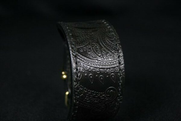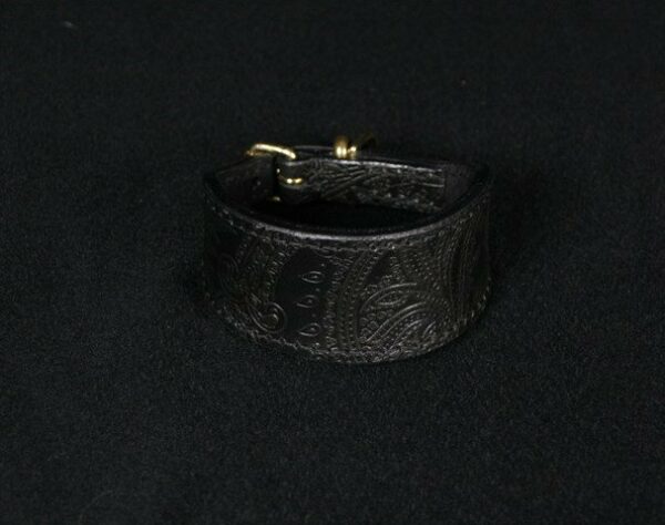 Collier pour Lévrier « Cachemire » – Cuir Vachette Noir Imprimé – 4 cm de Large .
