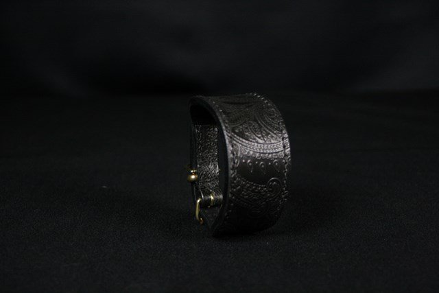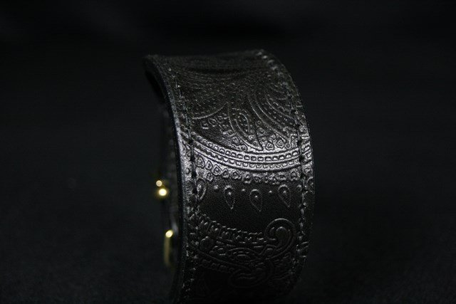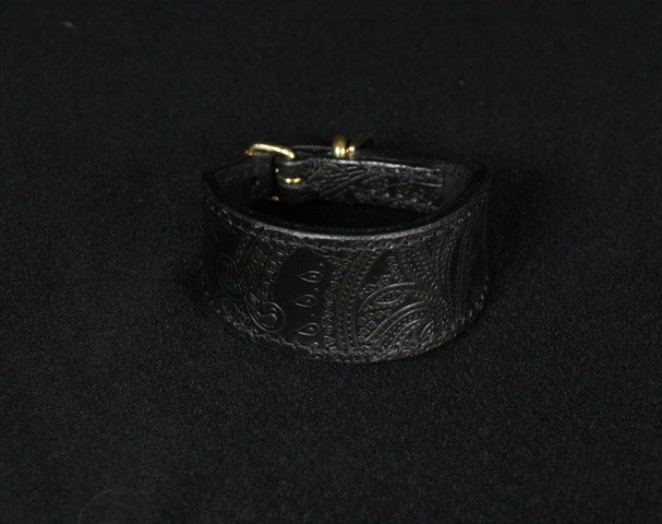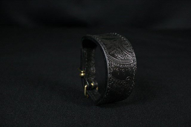 Collier pour Lévrier « Cachemire » – Cuir Vachette Noir Imprimé – 4 cm de Large .