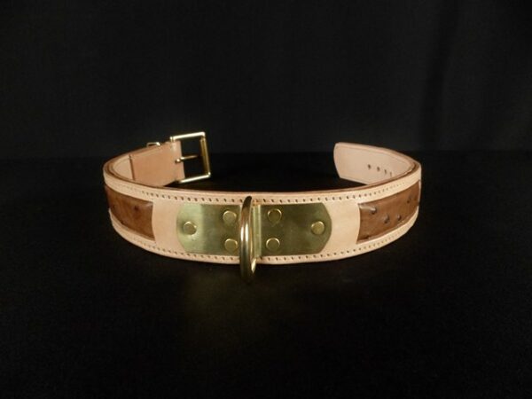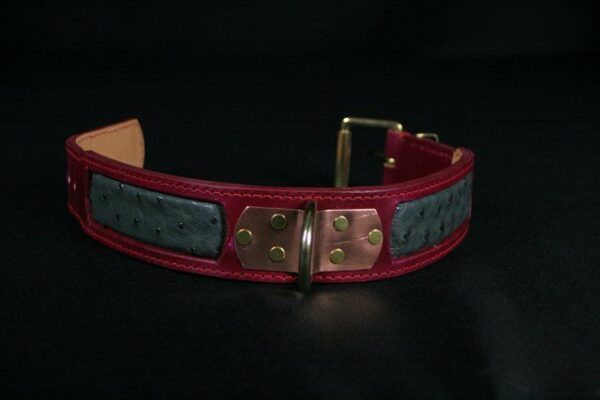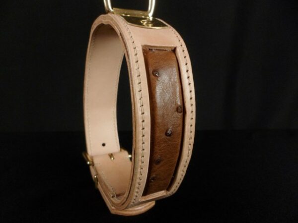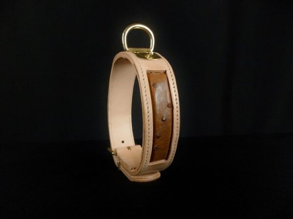 Collier pour chien en cuir avec incrustation de peau d’autruche véritable – 4,5 cm de large .