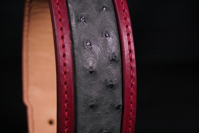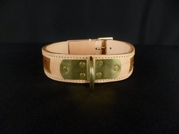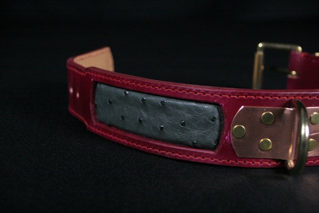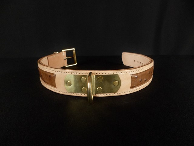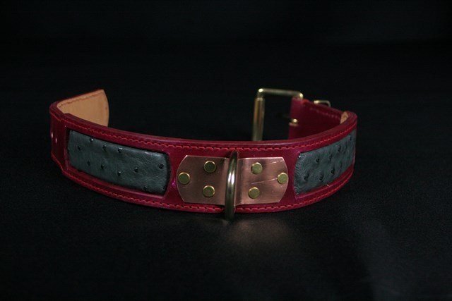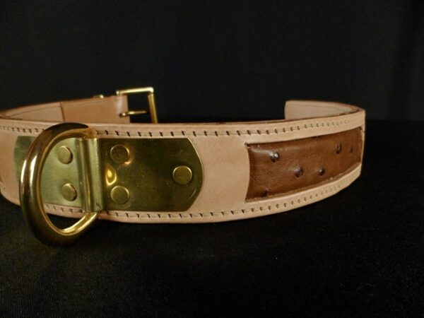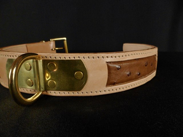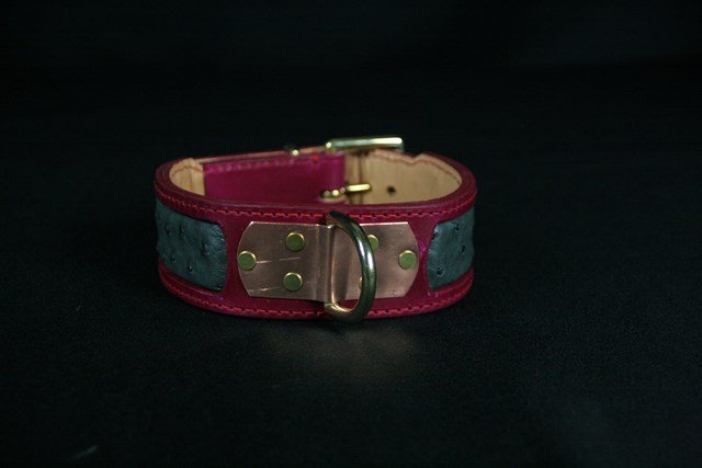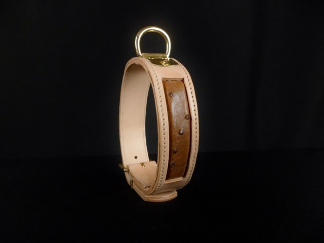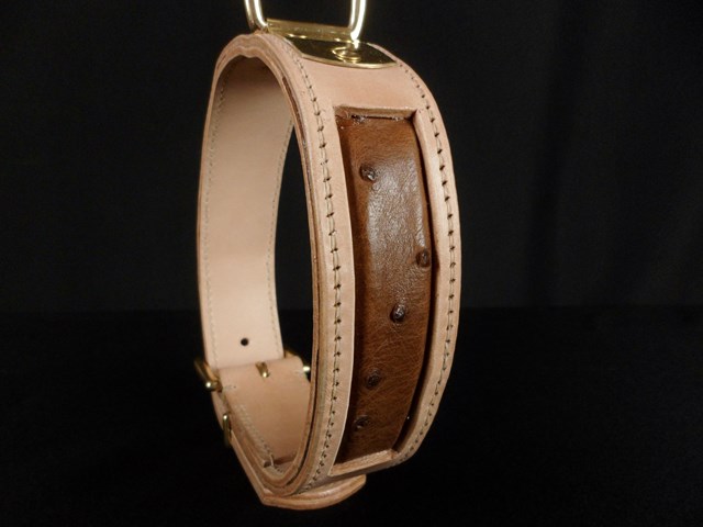 Collier pour chien en cuir incrustation peau d’Autruche véritable 4,5 cm large .