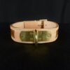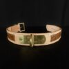 Bouclerie & décor : laiton massif (boucle, attache, plaque, rivets)