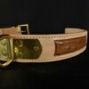 Tous nos colliers en cuir pour chien sont cousus main . Confectionner sur mesure et à la demande . ils sont réalisés avec des cuirs de premier choix ( galuchat , poils de blaireau , peau de requin , crocodile , peau de lézard , cuir de selleries … ) .
