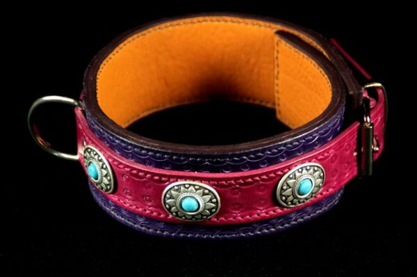 Collier pour chien en cuir martelé « Mexicain » – 5,5 cm de large .