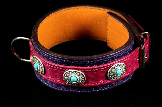 Collier pour chien en cuir martelé « Mexicain » 5,5 cm large .