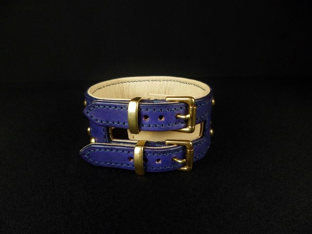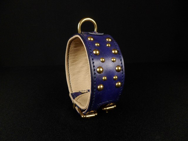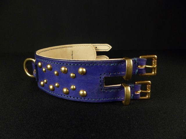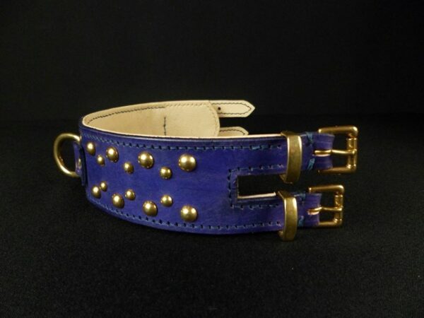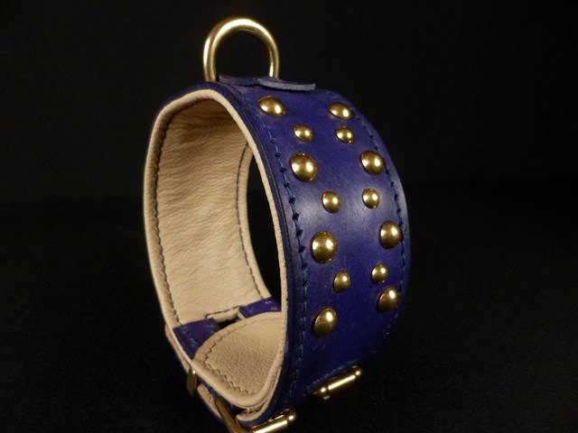 collier pour lévrier , petits clous laiton massif, double fermeture 4,5 cm de large .