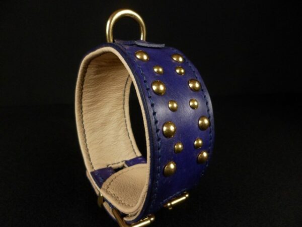 Collier pour Lévrier en Cuir – Petits Clous en Laiton Massif – Double Fermeture – 4,5 cm .