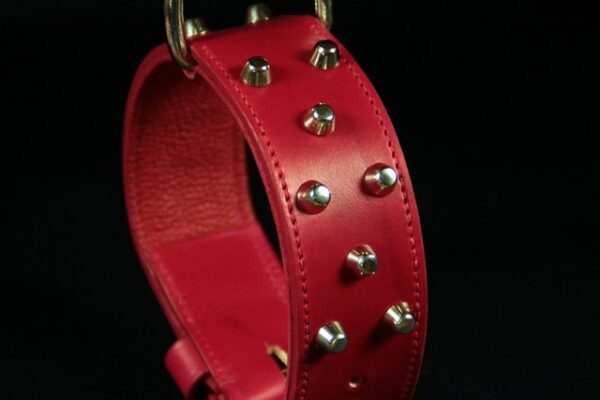 Collier pour chien en cuir de vachette avec clous coniques à tête plate – 5 cm de large .