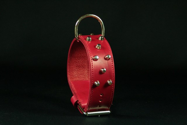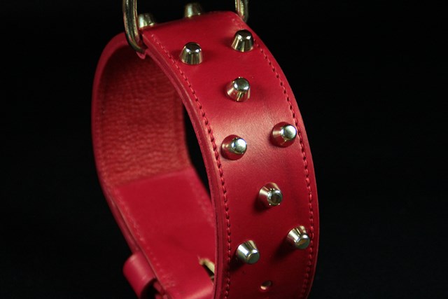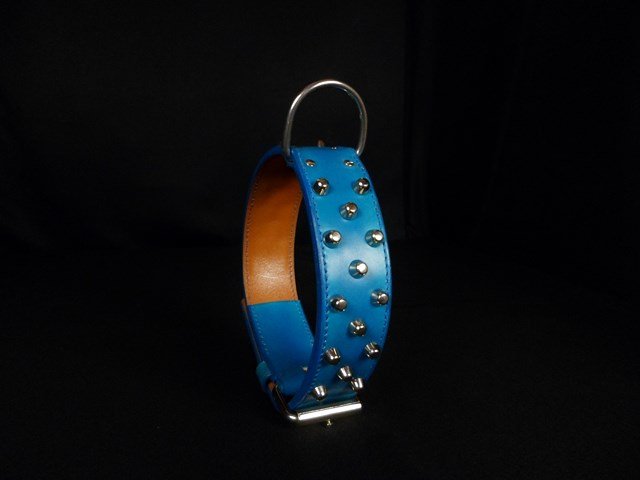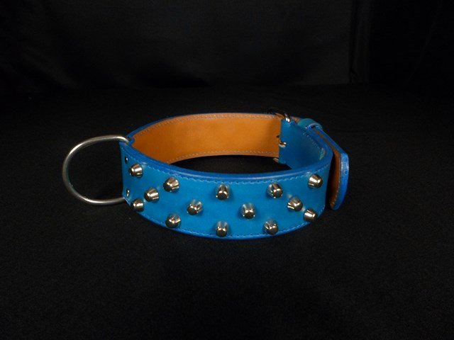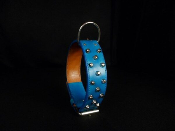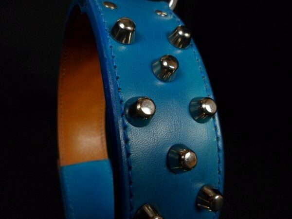 Collier pour chien en cuir de vachette et clous coniques tête plate 5 cm large .