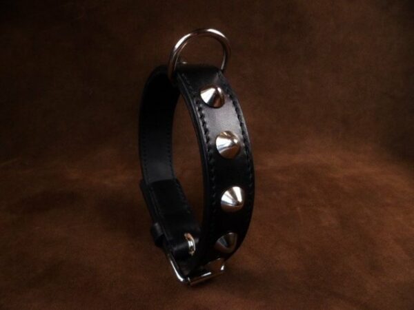 Collier pour chien en cuir de vachette avec clous coniques – Style affirmé et fabrication artisanale (3 cm) .