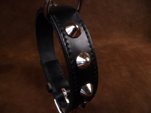 Collier pour chien cuir vachette avec clous coniques 3 cm large .