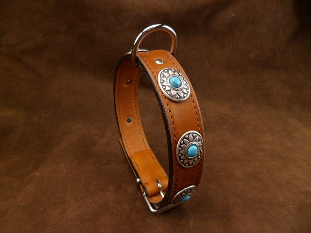 Collier pour chien « Mexicain » en cuir vachette 3 cm large .