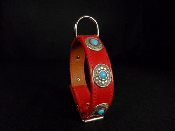 Collier pour chien « Mexicain » – Cuir vachette coloré – Largeur 3 cm .