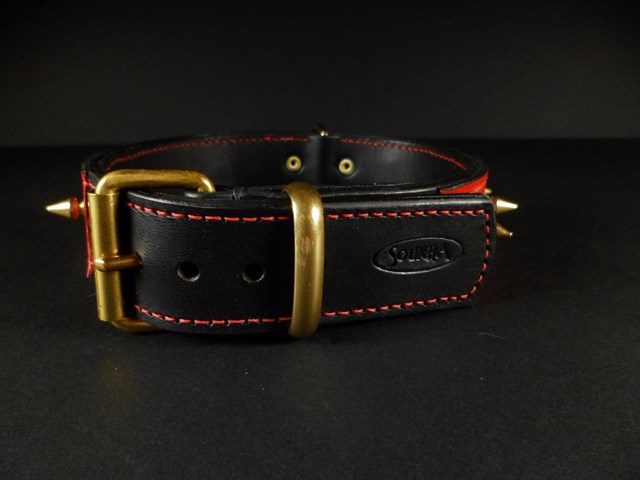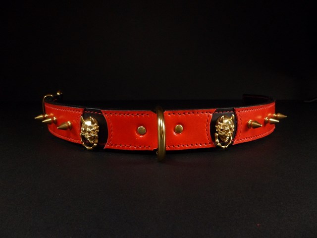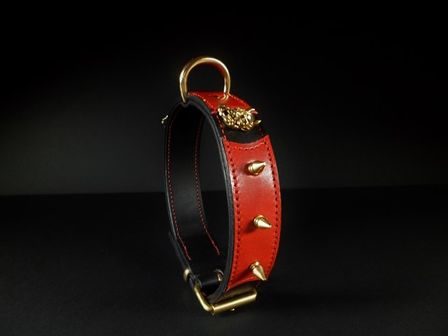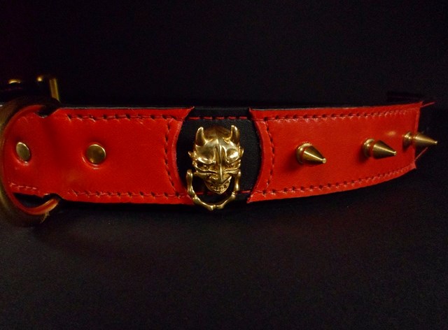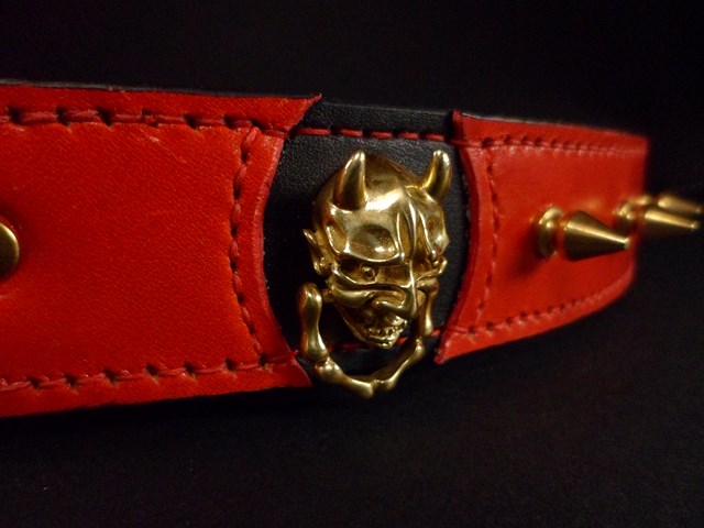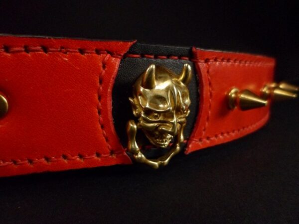 Collier pour chien « El Diablo » – Cuir bicolore rouge et noir – Largeur 3,5 cm .
