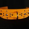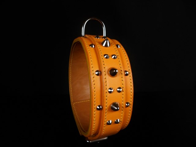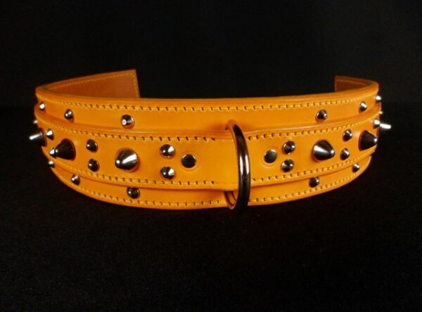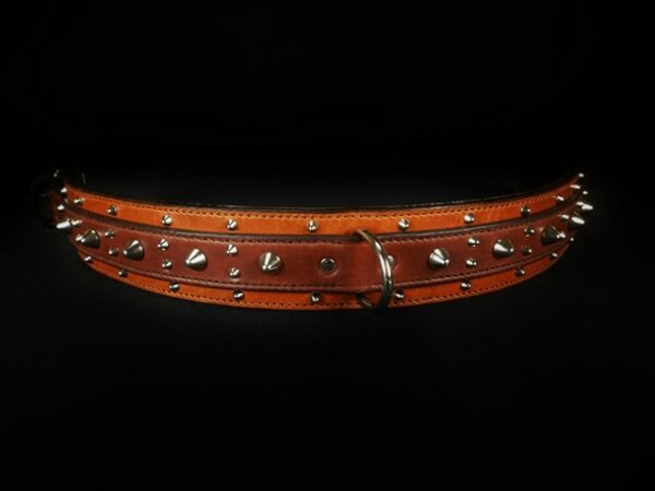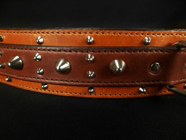 Collier pour chien en cuir de vachette bicolore avec clous coniques – 5,5 cm de large .