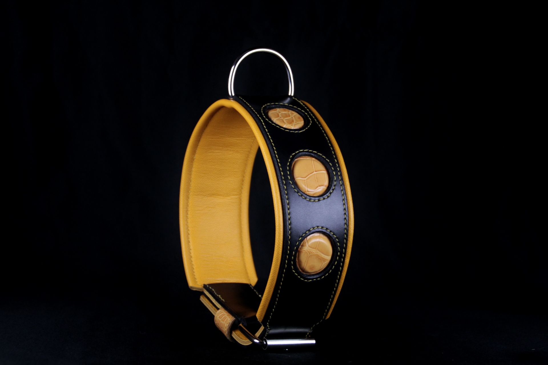 Collier pour chien en cuir avec incrustation croco – 7 cm de large .