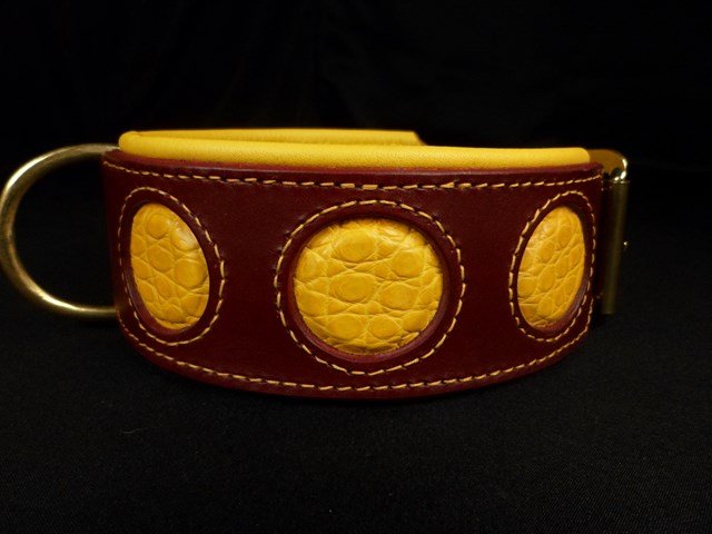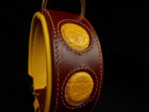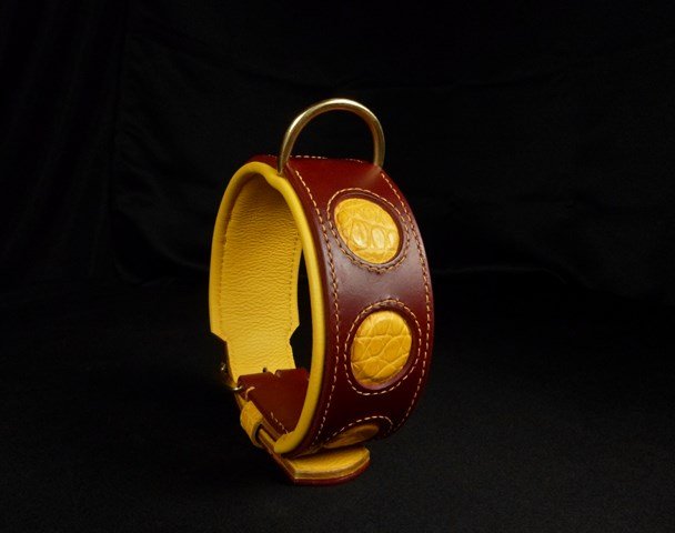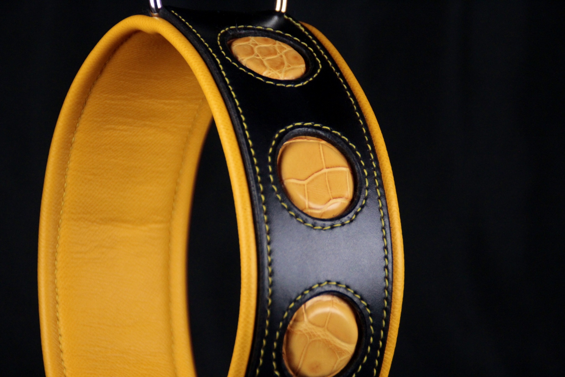 Tous nos colliers en cuir pour chien sont cousus main . Confectionner sur mesure et à la demande . ils sont réalisés avec des cuirs de premier choix ( galuchat , poils de blaireau , peau de requin , crocodile , peau de lézard , cuir de selleries … ) .