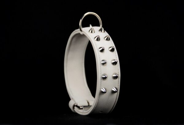 Avec ses 6 cm de large, ce collier offre un excellent maintien tout en affirmant un look fort et stylé. Les clous coniques, la boucle et l’attache en métal nickelé apportent une finition moderne et brillante, parfaitement adaptée aux chiens au tempérament affirmé.