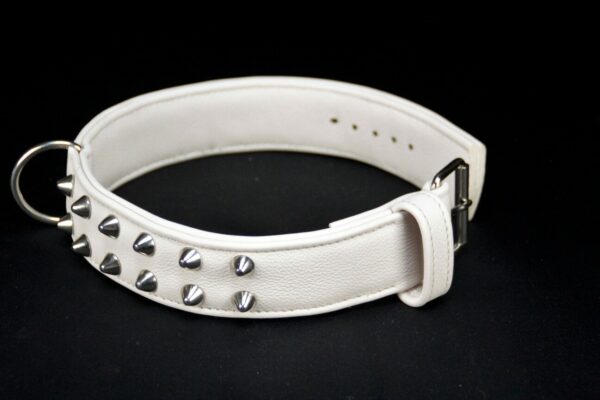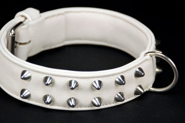 Collier pour chien en cuir de taurillon avec clous cônes – 6 cm de large .