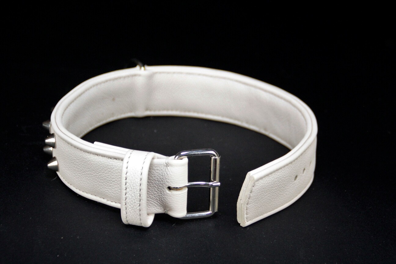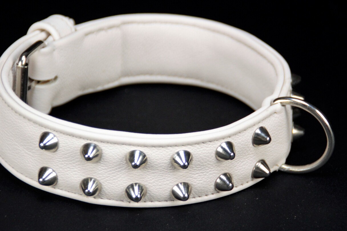 Collier pour chien en cuir de taurillon Clous cônes nickelés 4,5 cm large .