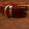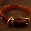 Réalisé à partir de cuir de collet bordeaux pour l’extérieur et de veau marron clair pour la doublure, ce collier offre une tenue parfaite et un confort optimal. Sa largeur de 4 cm (4,7 cm avec bordures) assure maintien et présence visuelle, sans négliger l’ergonomie.