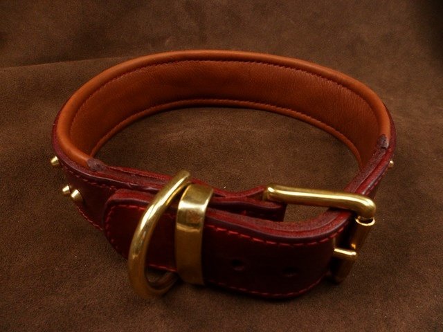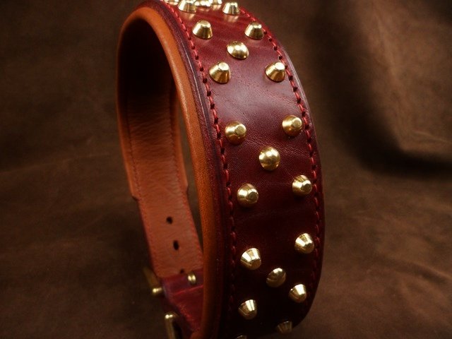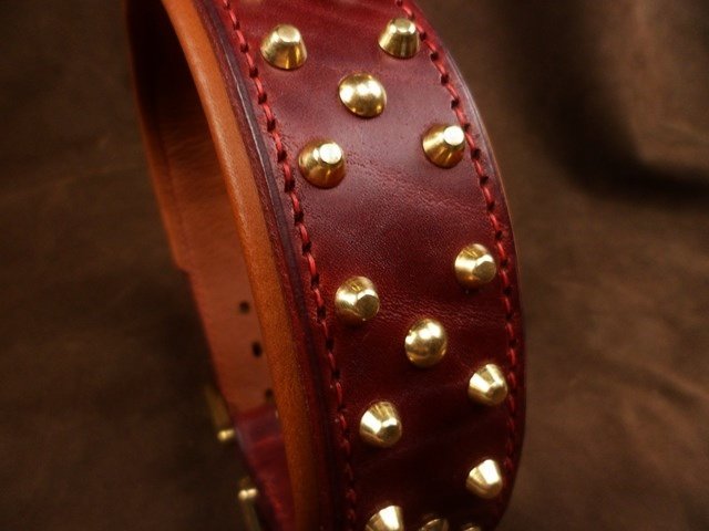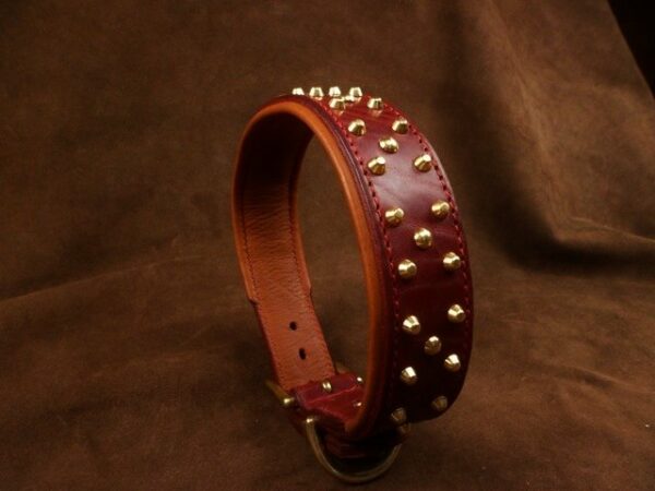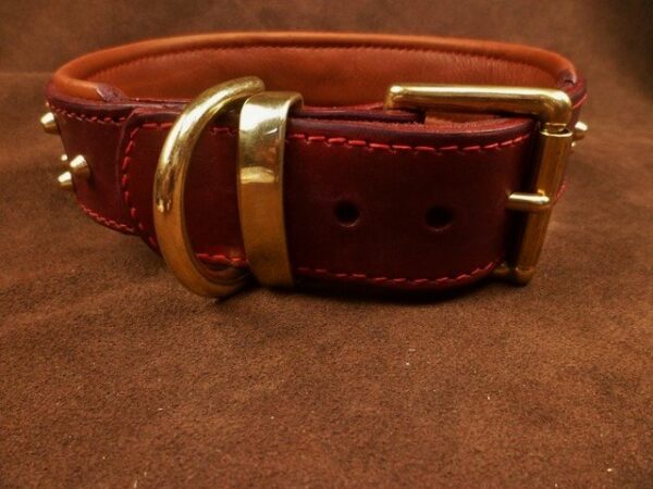 Collier pour chien en cuir vache « Double Clous » – 4,7 cm – Laiton massif – Série limitée .