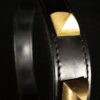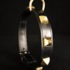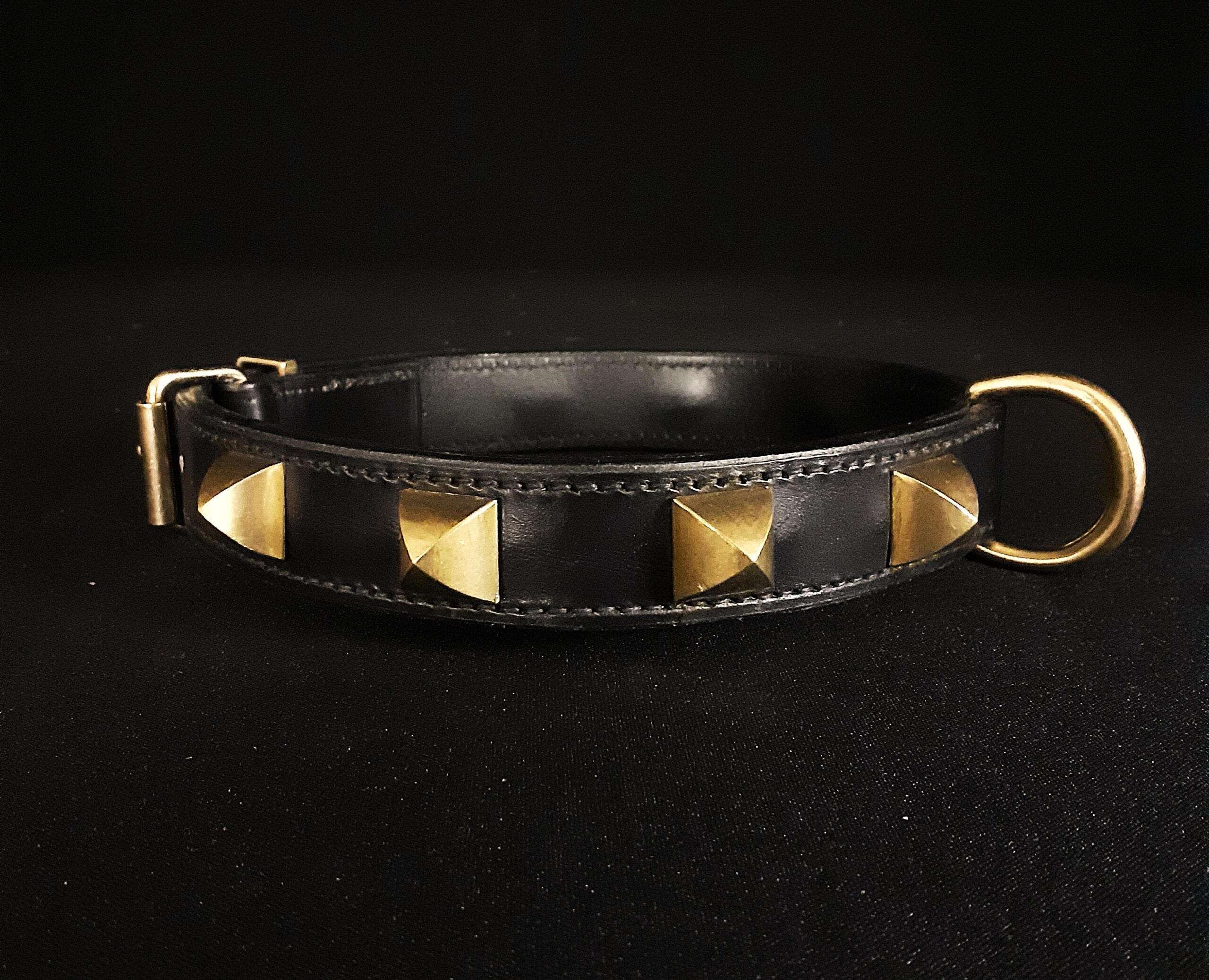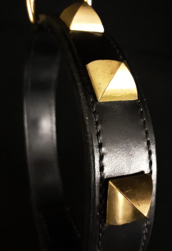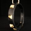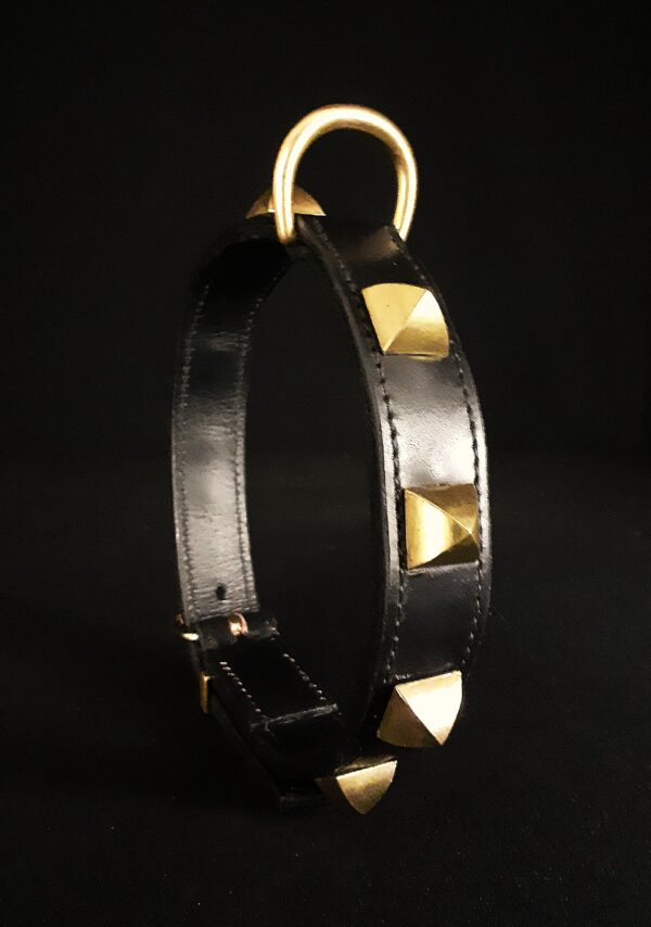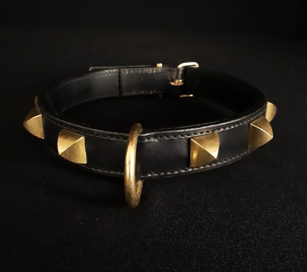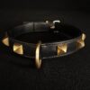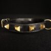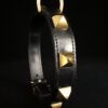 Collier pour chien en cuir noir et pyramides en laiton massif .