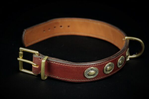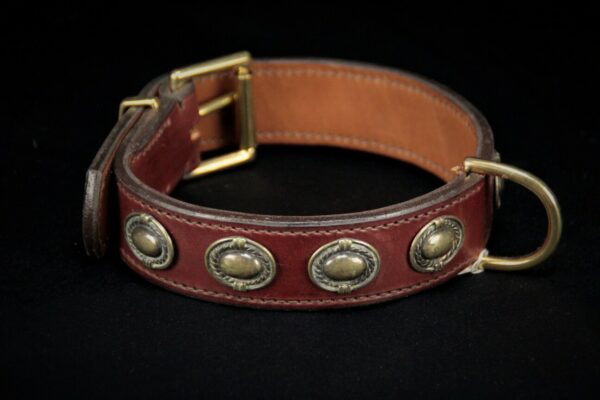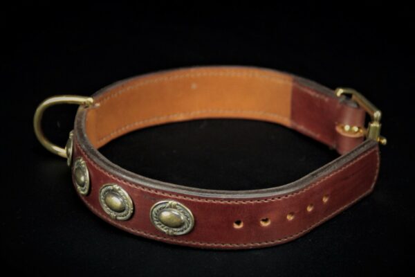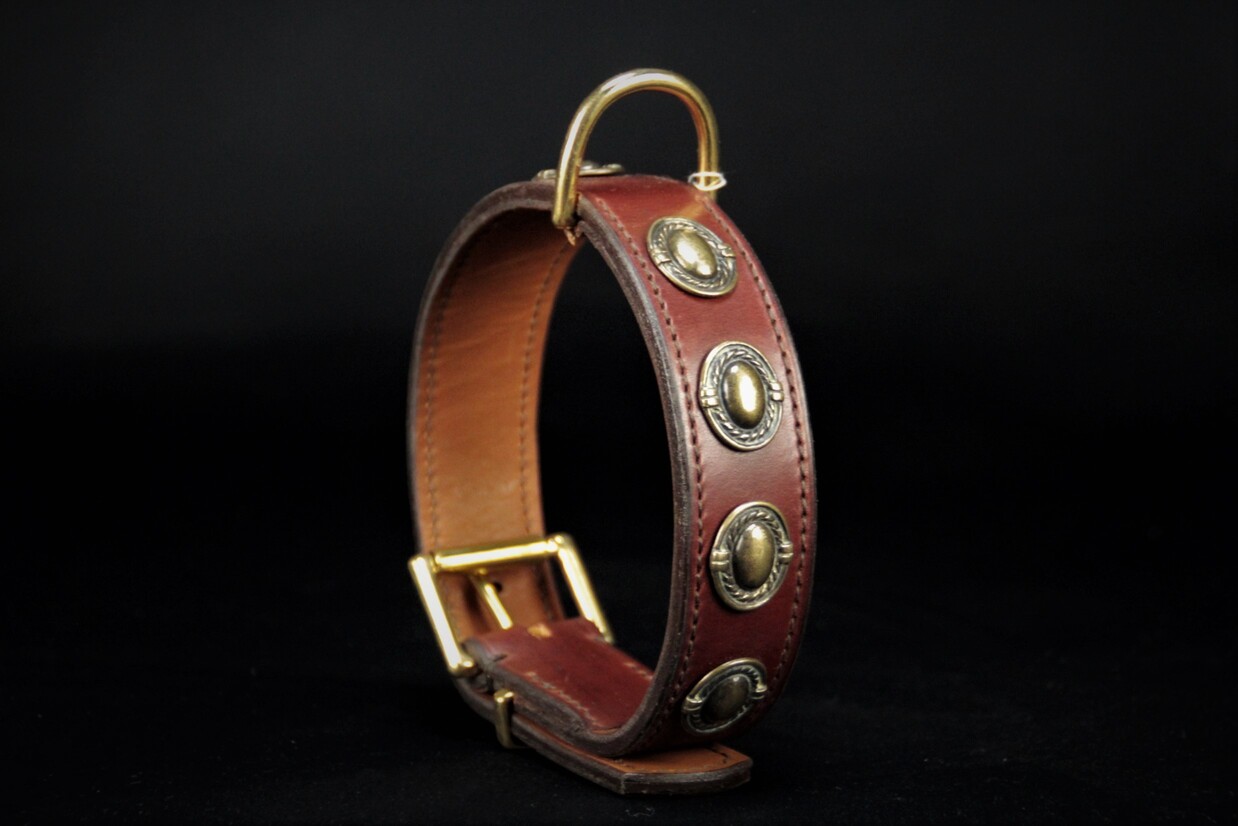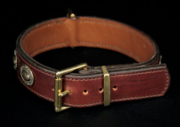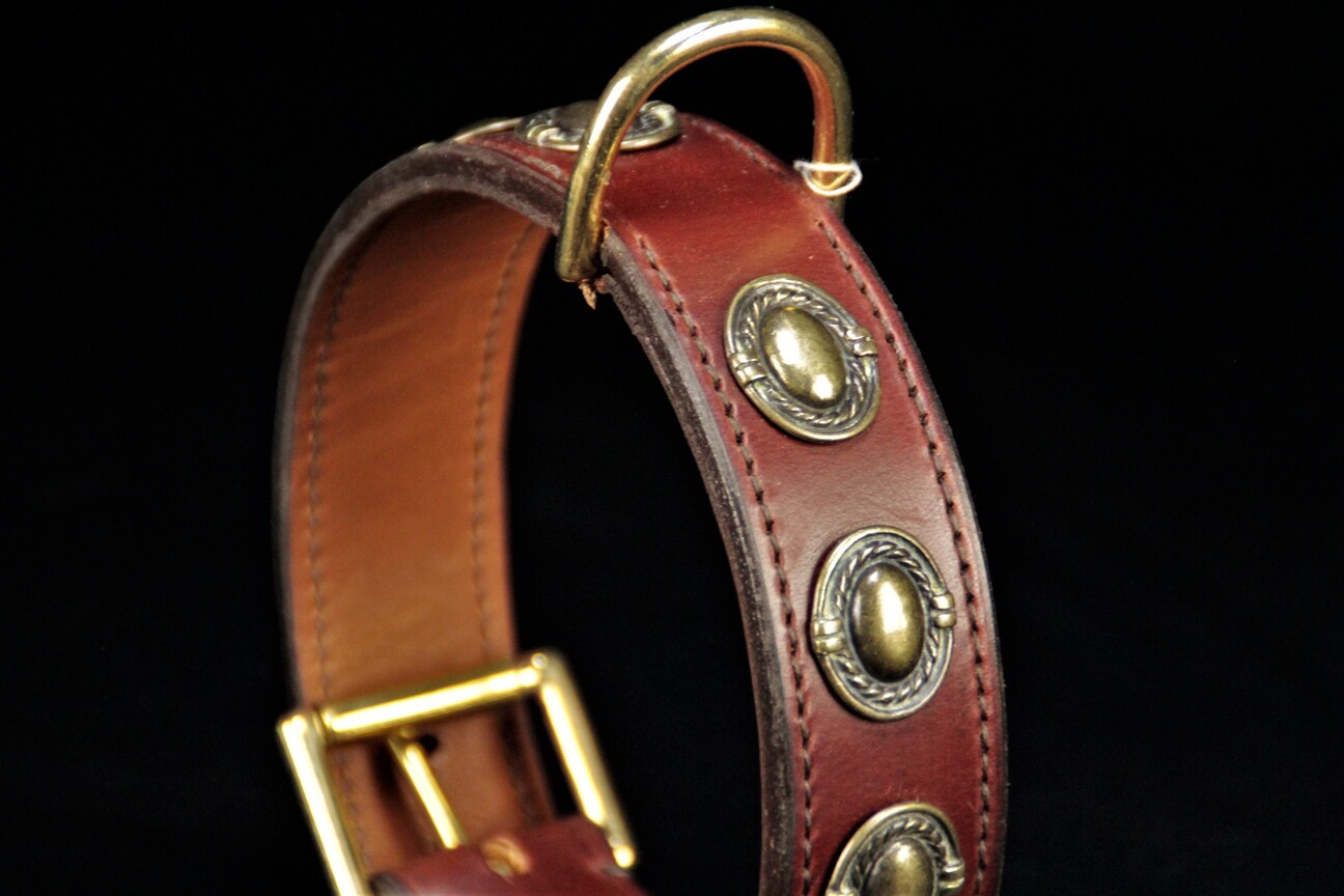 Chaque collier est réalisé avec une couture sellier cousue main, gage de robustesse et de finitions haut de gamme. Sa boucle, son passant, son attache et ses décors en laiton massif offrent non seulement un style intemporel .