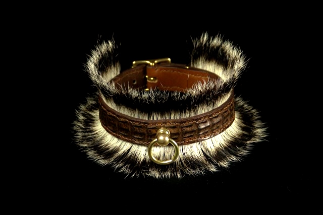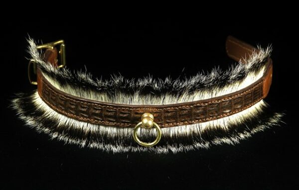 Collier pour chien en dos de caïman et poils de blaireau – Pièce unique & fabrication artisanale .