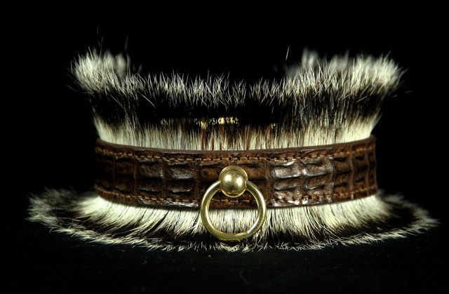Collier pour chien en dos de caïman et poils de blaireau *UNIQUE*