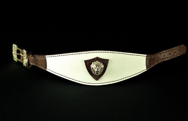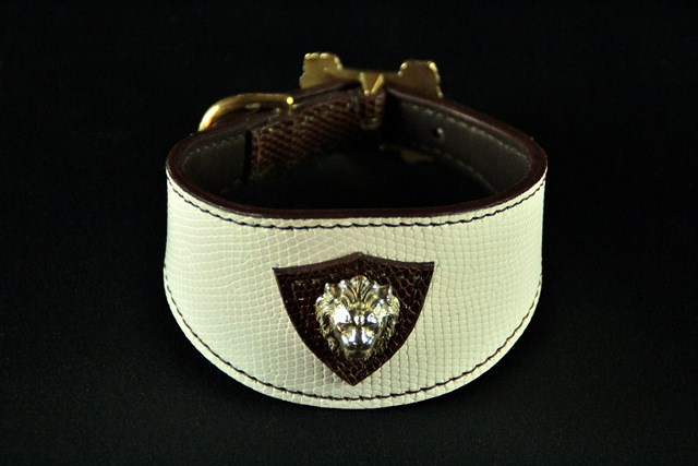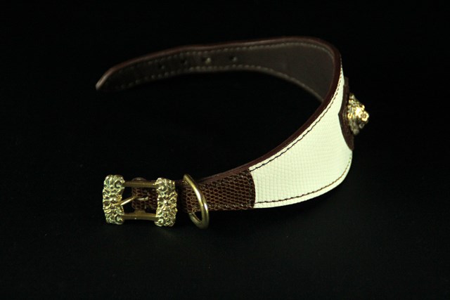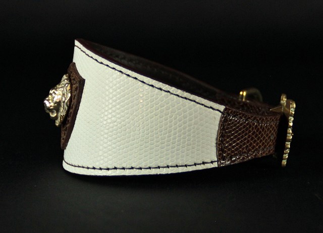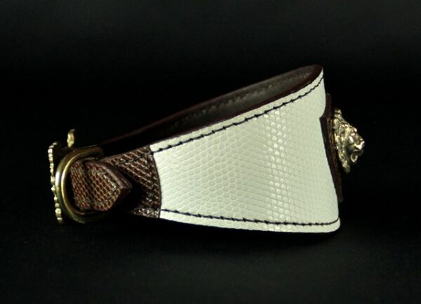 Collier pour lévrier en Lézard bicolore 6 cm large .